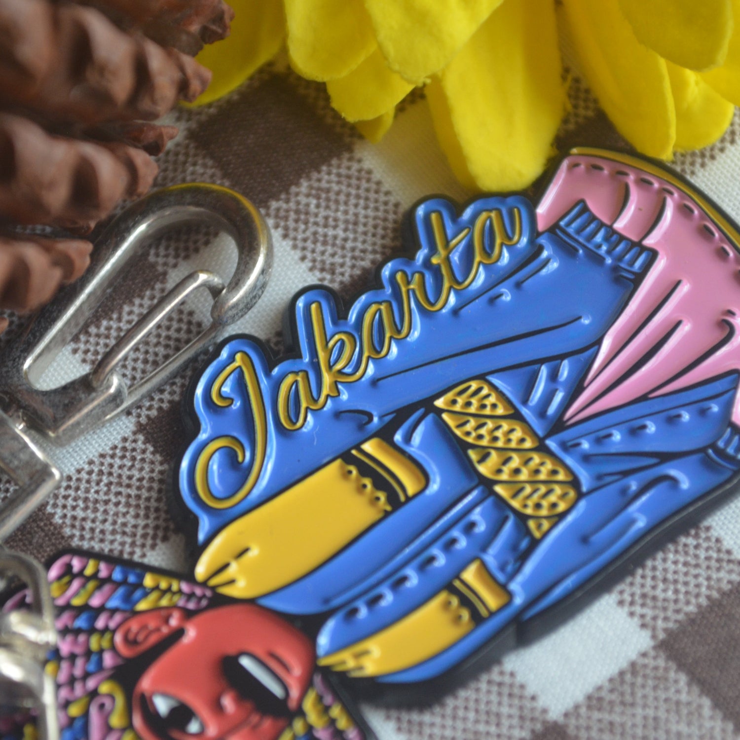 To add drama to the design, and to hang the coconut keychain straight, we added the loop attaching the ring, to the straw.