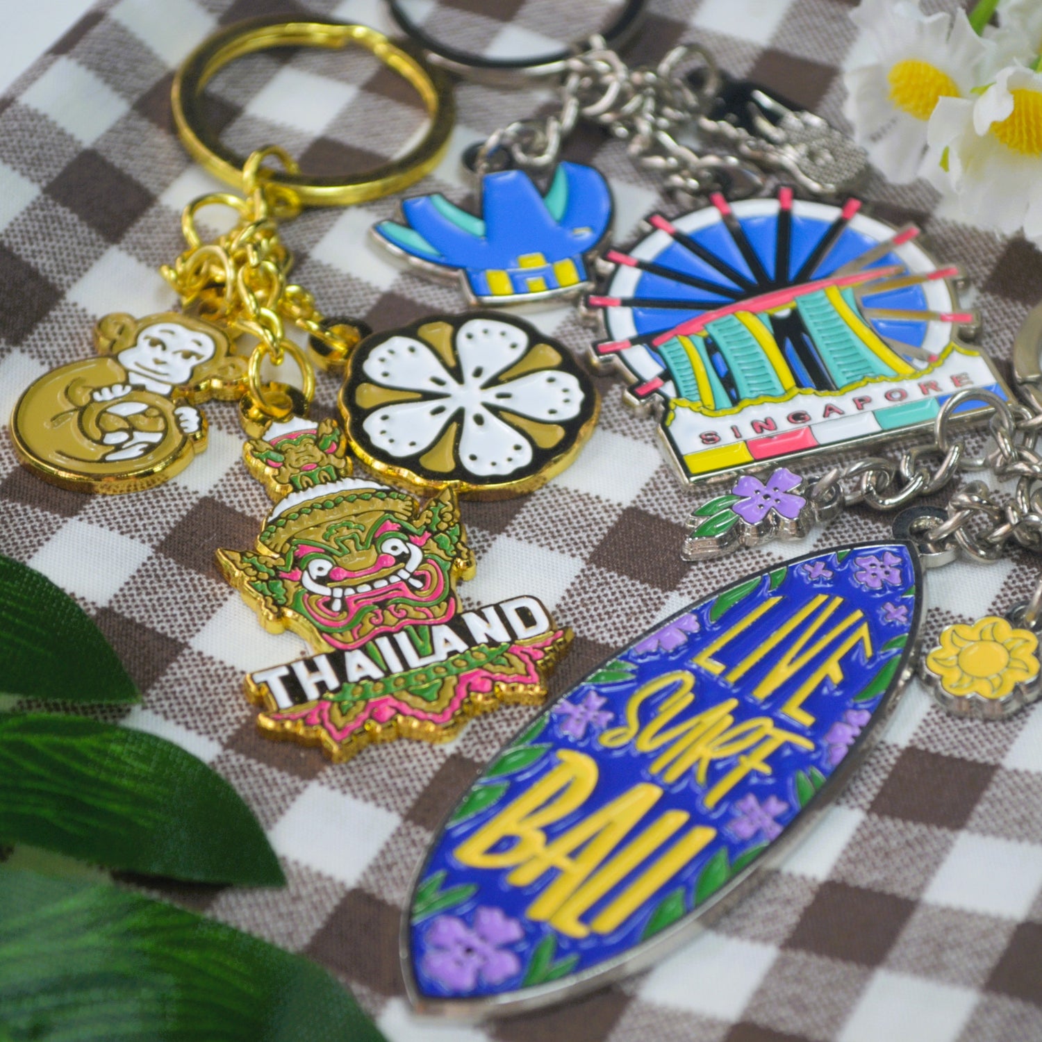 Our charm keychains come with multiple pieces (normally three), chosen to reflect monuments or elements of a destination's culture. We push color and shape to give each piece a unique look.