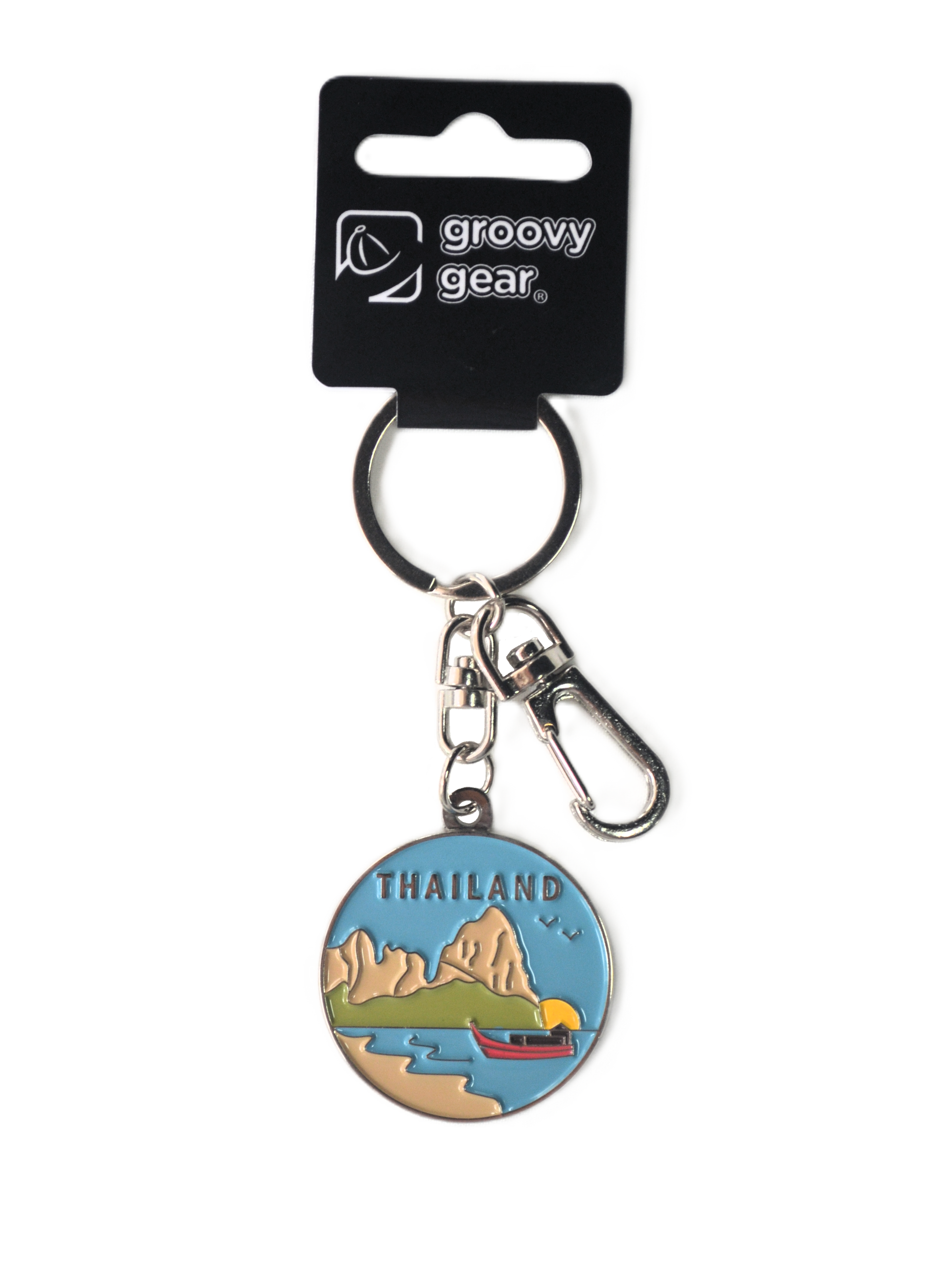 Beautiful enamel metal keyhain with polished back. This keychain will remind you of the beautiful cliffs and beaches of Southern Thailand, with this scene from Krabi.
